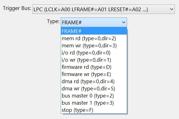 Note: due to hardware resource limits, the LRESET# signal cannot be used to trigger in Serial Bus Trigger mode. If needed, use the "Simple" TriggerForm to trigger on LRESET#=falling.