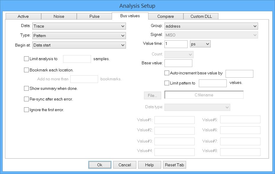 Each line in the ASCII file is a hex value compared to each bus value in the trace capture. Bus values which differ from the text file are errors. When all the text lines are used, the test restarts using the first line in the file. This process repeats until the end of the trace data is reached.