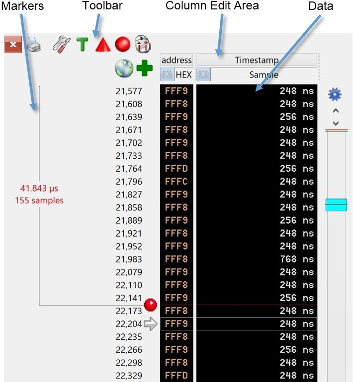 The Numeric pane displays the captured trace data as numeric values.