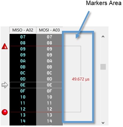 The marker area on the right side of the Data Area view shows the measurement values for each marker-pair.
