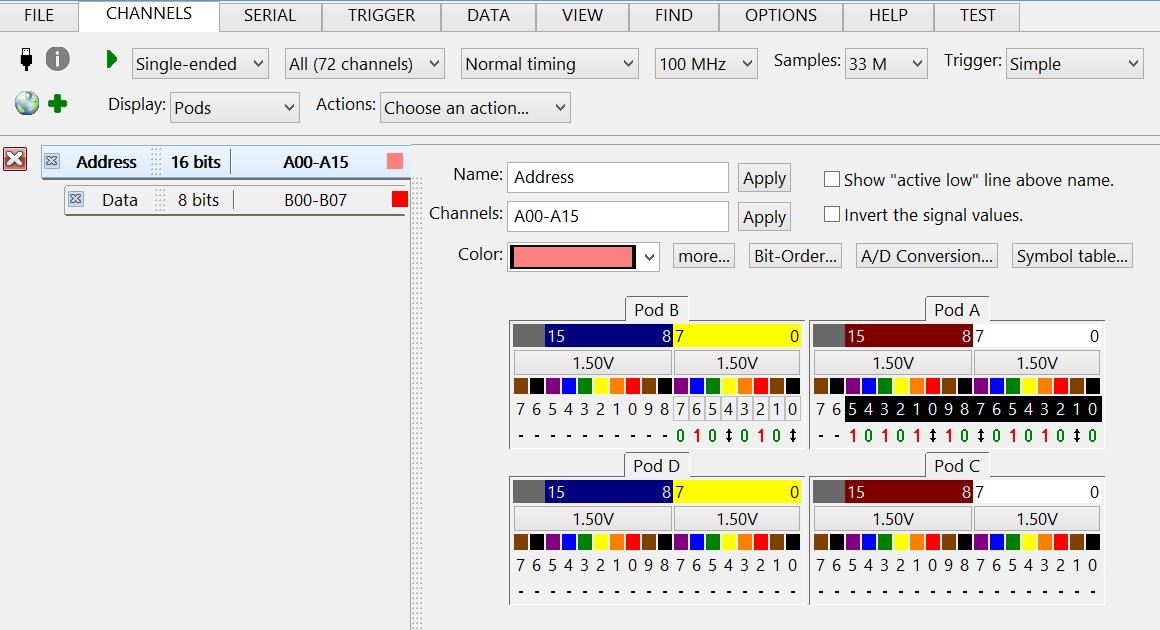 | Unused channels are ignored at run-time. No data is captured on these signals, they cannot trigger, and they cannot be displayed in the data views. |