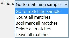 The Find buttons are available when the "GoTo Matching Sample" action is active.