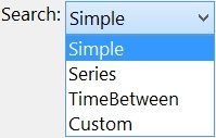 The Simple, Series, TimeBetween, and Custom SearchForms are always listed. Serial Bus SearchForms are listed only when an associated serial bus conversion exists in the project.
