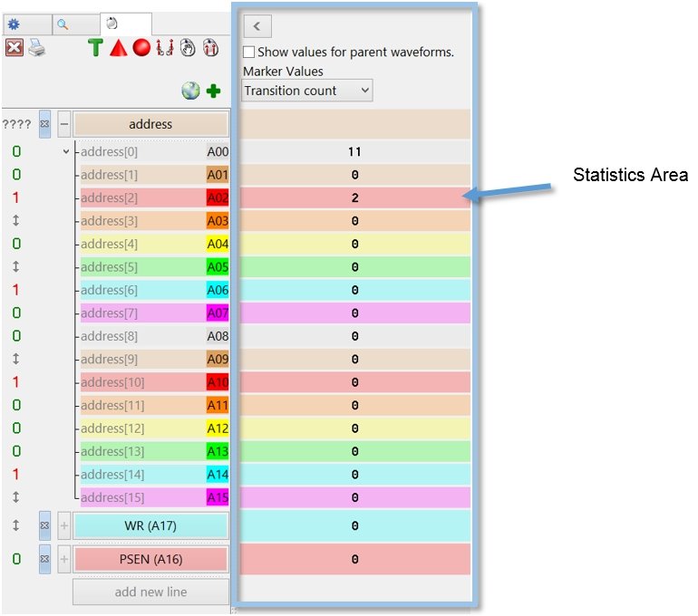Once enabled, the display type can also be defined with the Marker Values List at the top of the Statistics Area...