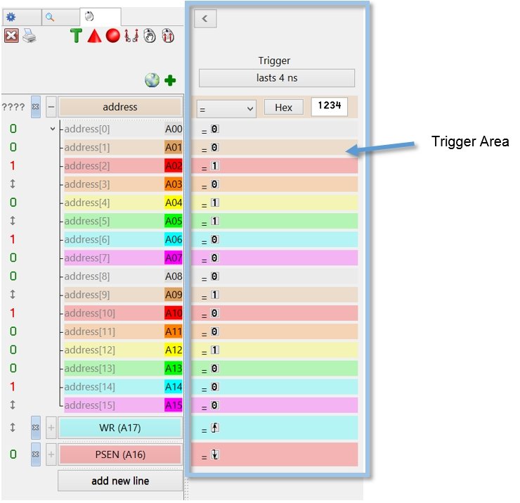 When the Simple TriggerForm is active, the WaveForm displays the trigger area next to the Line Buttons Area.