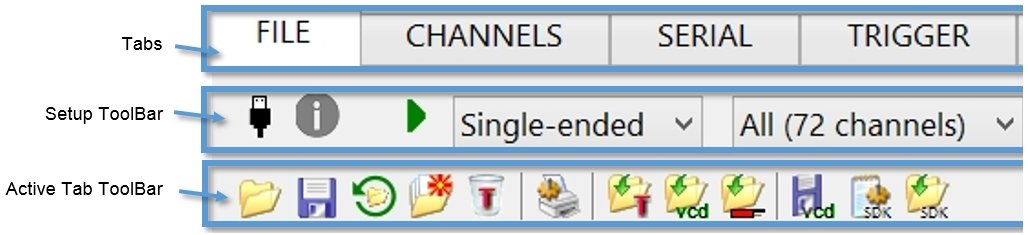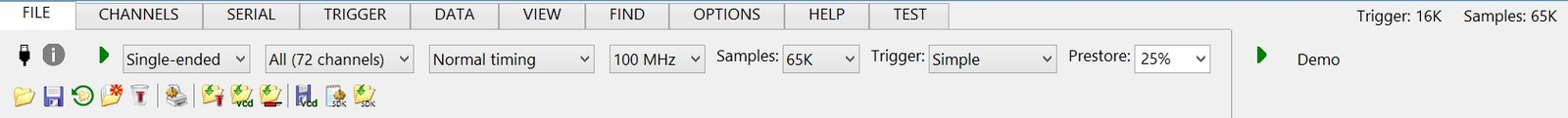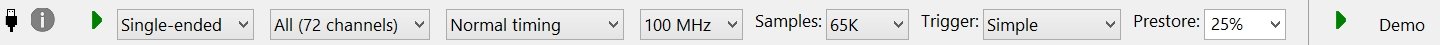 All logic analyzer setup values are available at the top of the GoLogic7 software...